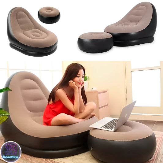 🛋️DreamSeat® – Sofá Inflable 2 en 1 con Cojín para Pies